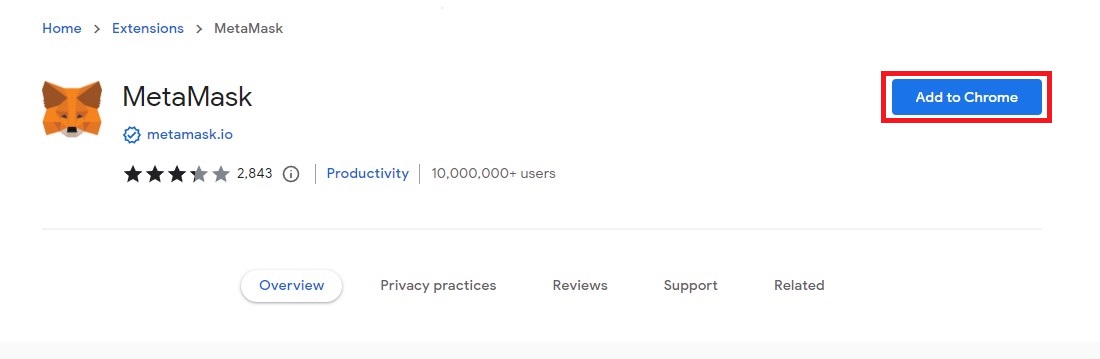 Click "Install MetaMask for Chrome"