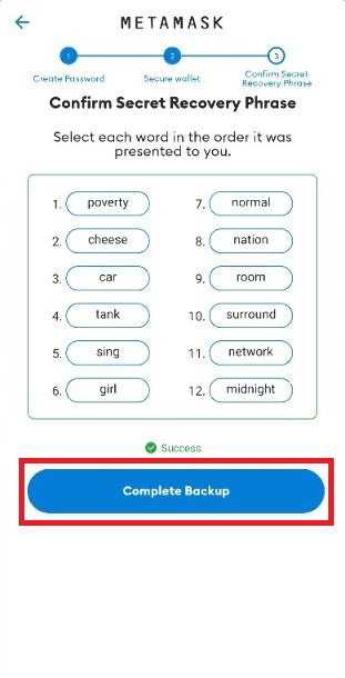 Enter all the words in order to confirm you have made a record of the words.