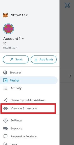 "View on Etherscan" will show your wallet on etherscan.io. This shows all information on the blockchain. (See Learning).