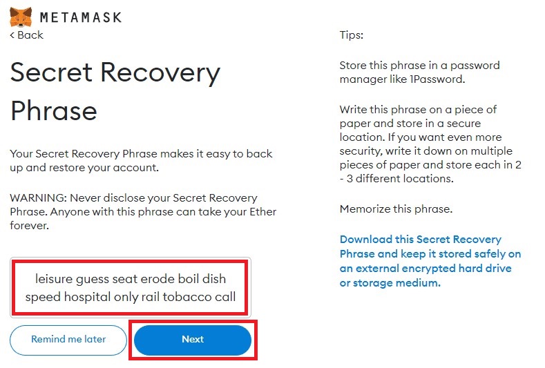 Make a note of the 12 words somewhere safe